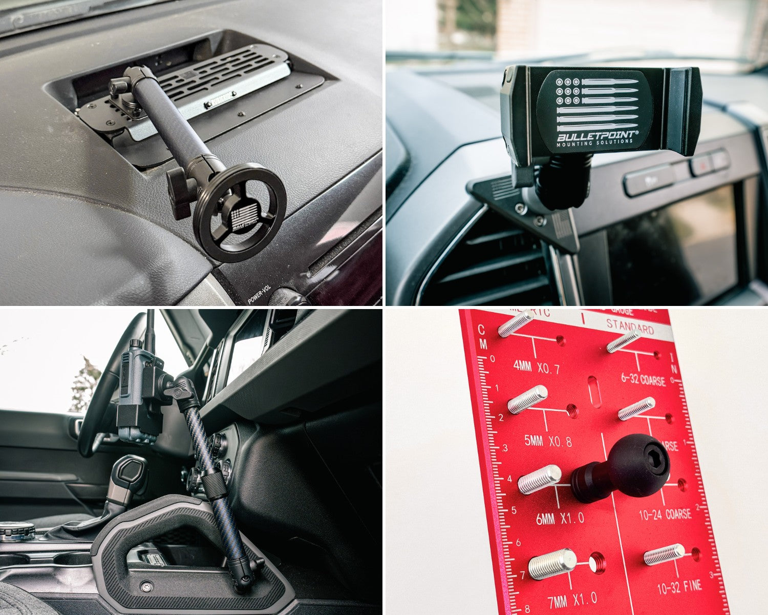Unlock an additional device mounting location in your Jeep or Bronco with Bulletpoint's new Center Console Ball mounts.