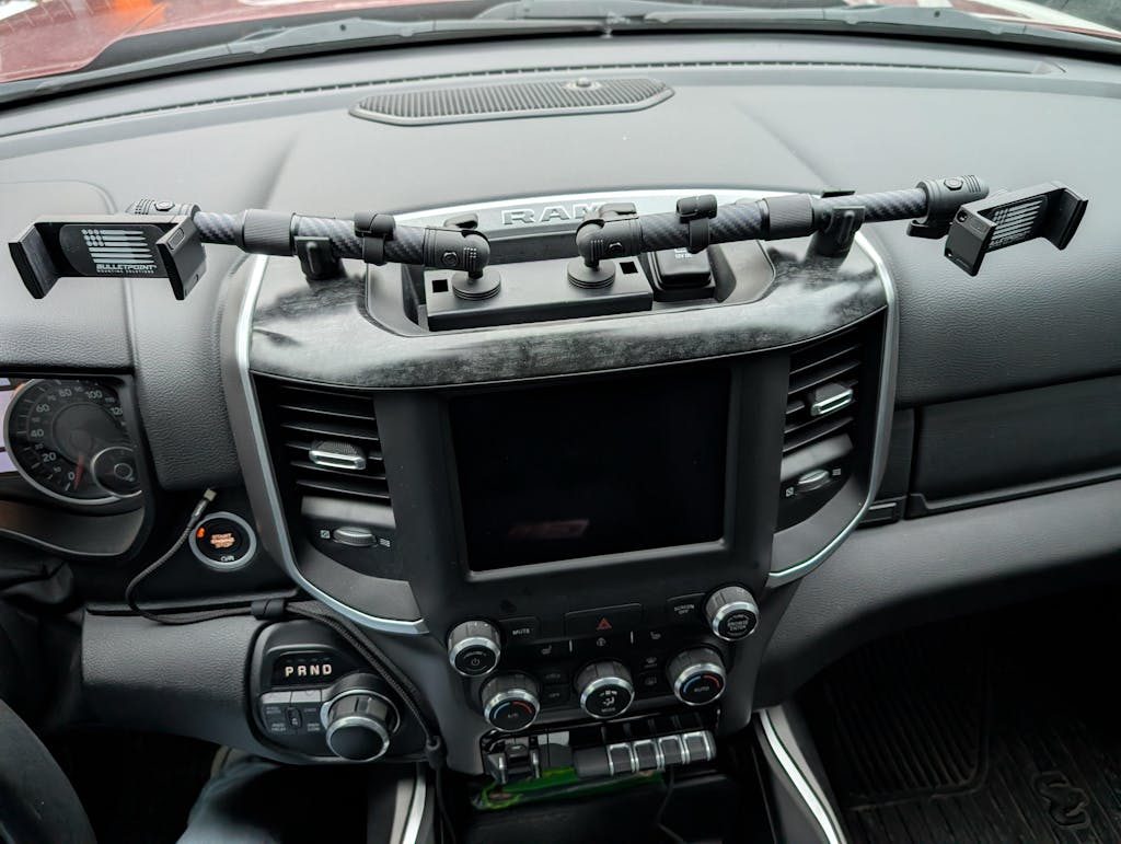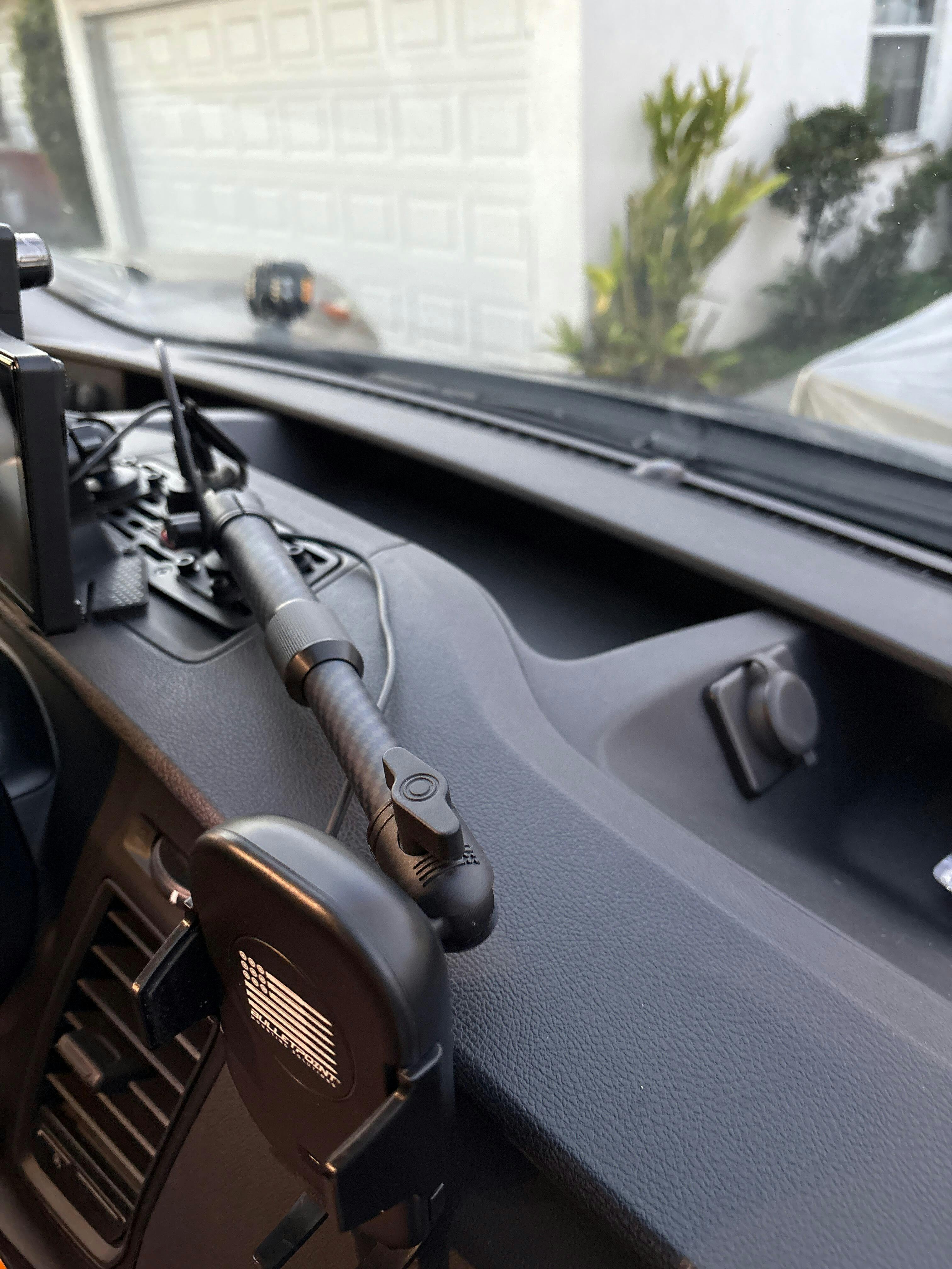 Our telescoping mounting arms feature carbon fiber + kevlar construction with aluminum connector ends. They provide a rock solid connection between your dash mount and your device holder.