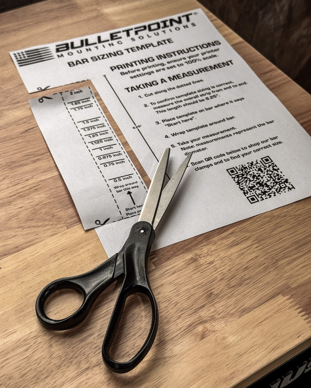 Measure once, buy once! Ensure you get the right-sized bar clamp the first time by cutting the template and wrapping it around the bar you wish to mount the clamp to.