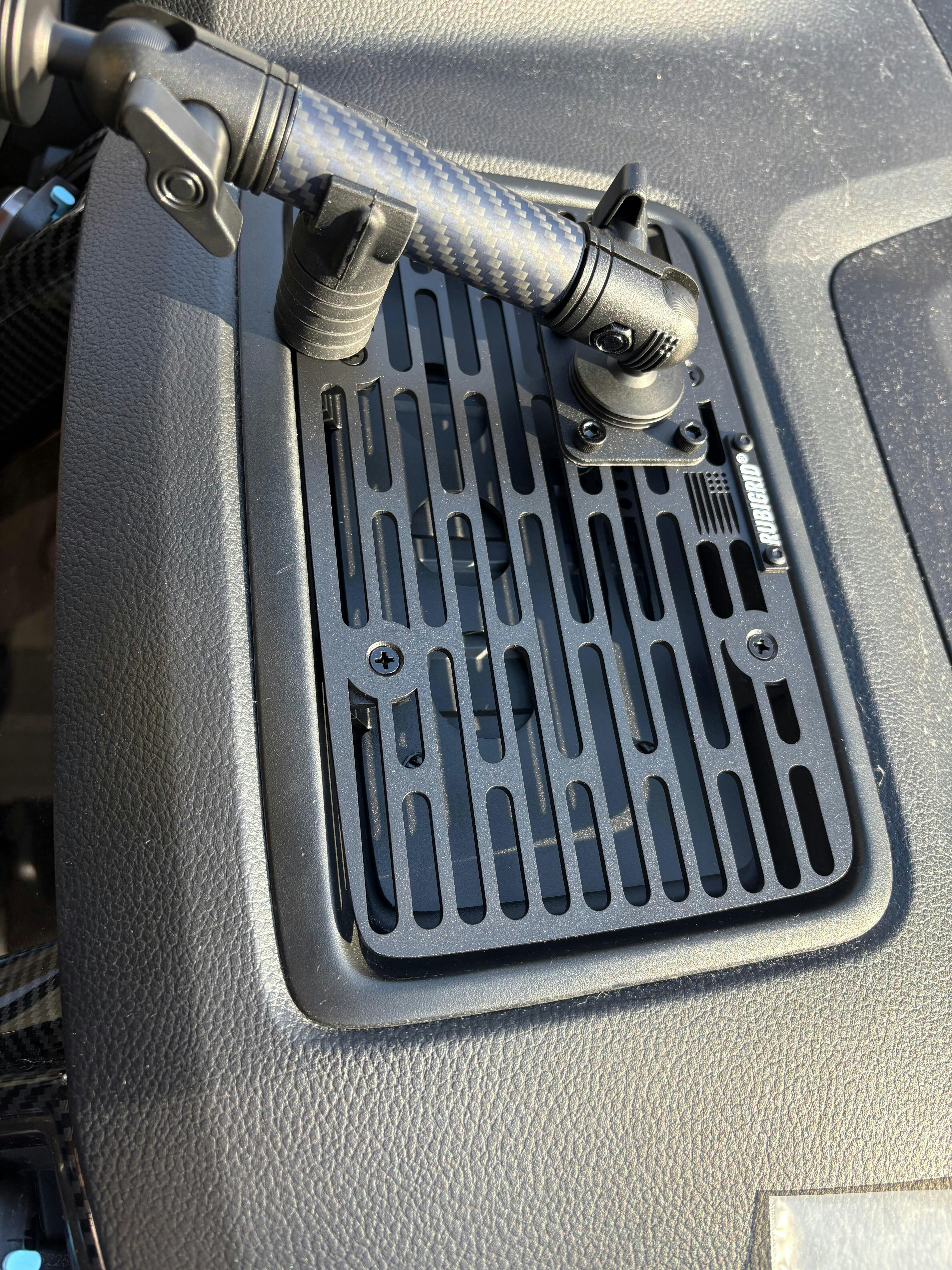 Installation is as simple as removing the dash tray and drilling four small holes to properly secure our RubiGrid® mount to the dash.