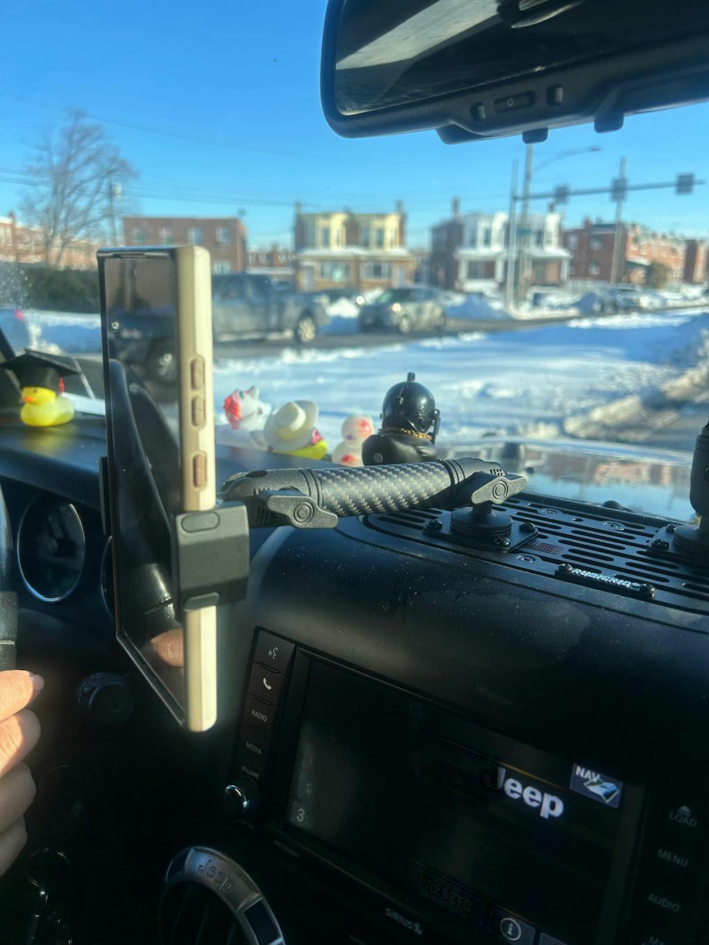 Since our JK RubiGrid® Dash Mount installs using the OE screw already found in your dash, your choice of included hardware (2 options) plus double sided tape, the result is a rock solid base for all of your devices.