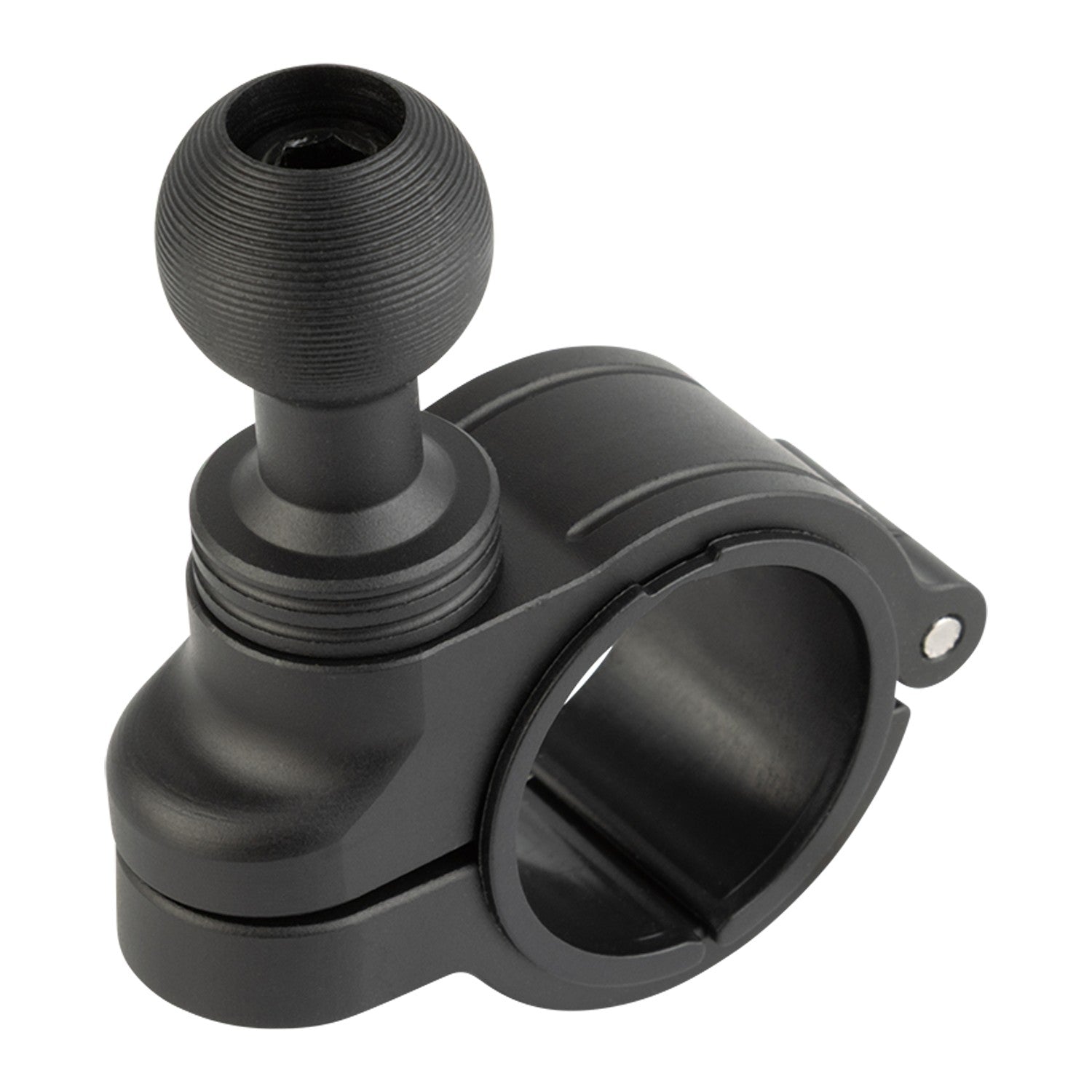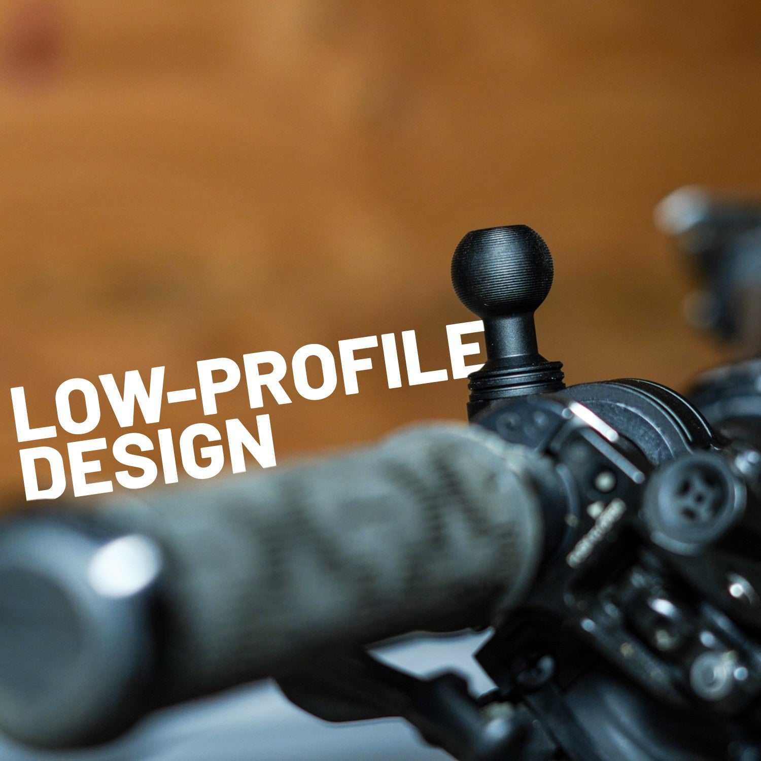 This mount features an offset ball design instead of a center-mounted one. This minor but deliberate engineering choice allows for the mounting ball to sit more flush with your handlebars resulting in a lower-profile assembly.