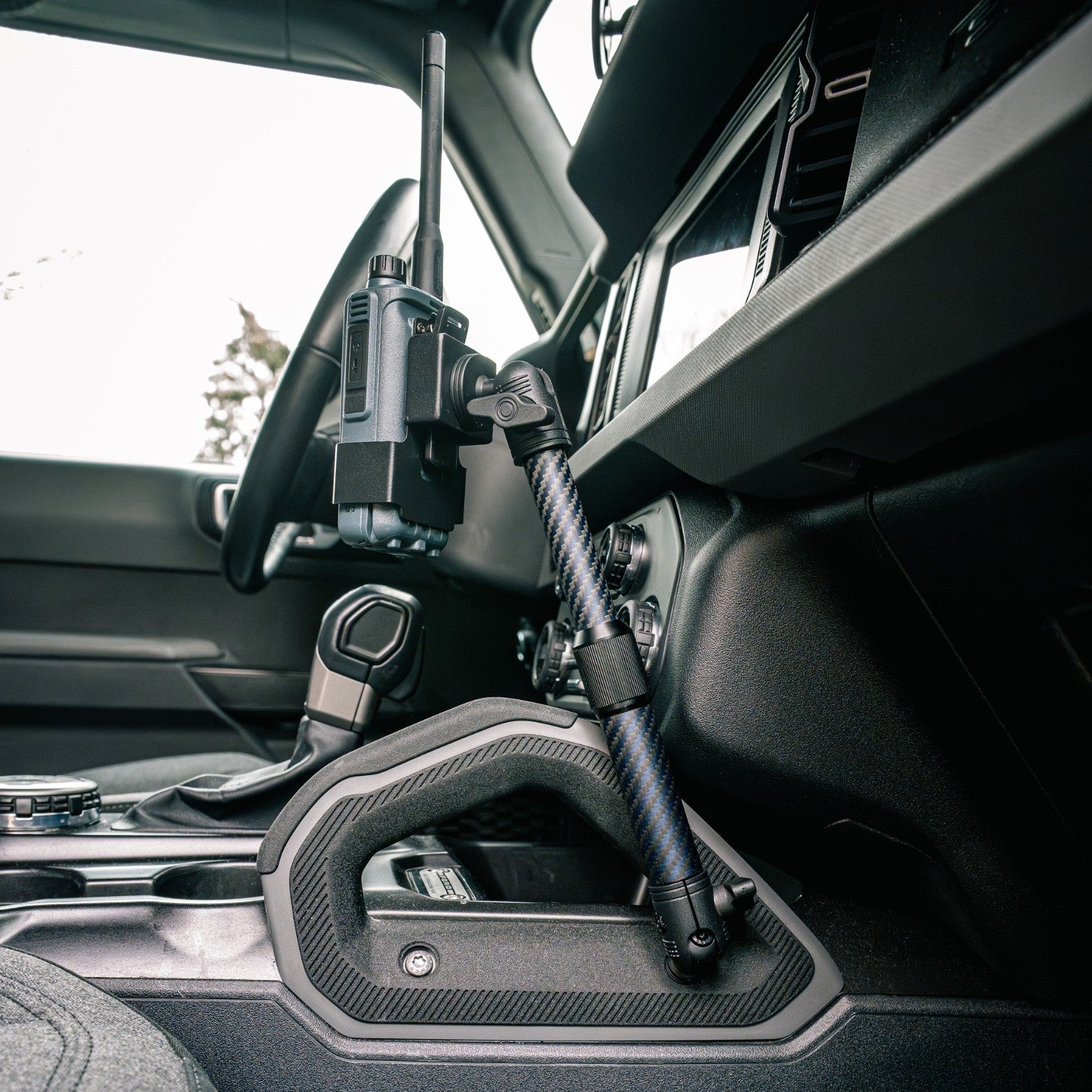 Skip the guesswork and choose one of our pre-built center console kits using the dropdown menu. To give you the most flexible positioning possible, these configurations include our premium 8" to 10.5" Telescoping Carbon Fiber + Kevlar Mounting Arm. This adjustable arm allows you to fine-tune the height and angle of your device, ensuring it sits exactly where you need it. Available with various holders to secure phones to radio holders, these kits provide everything you need in one package to get your Bronco trail-ready.