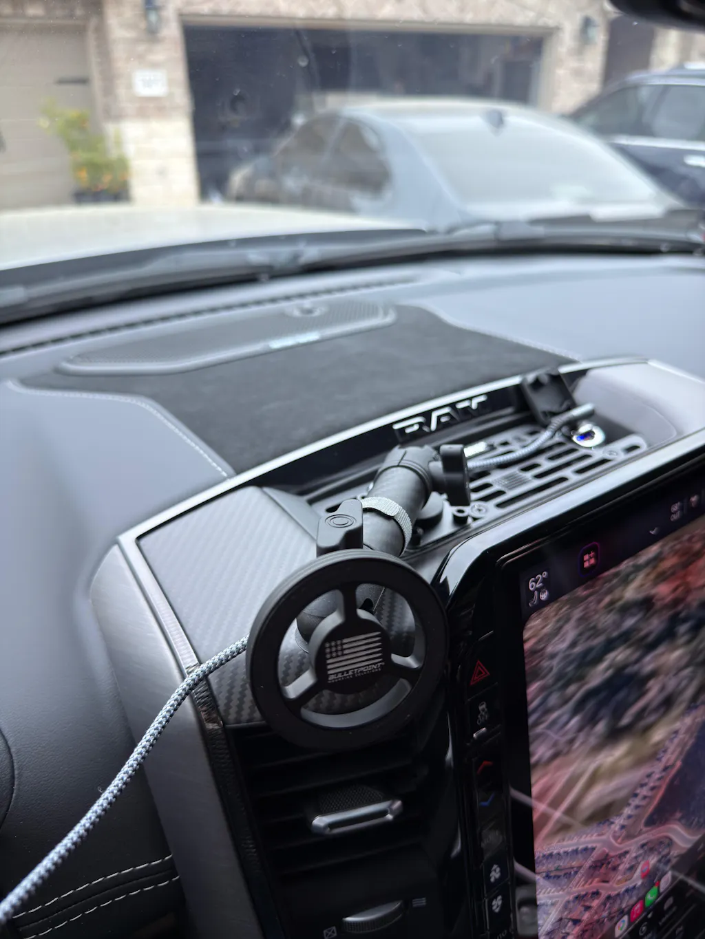 Our RubiGrid® dash mount for the 2019+ RAM Truck has the look and feel of a factory-installed option. It follows the lines of the dash tray opening while still allowing access to the dash-mounted 12V outlet.