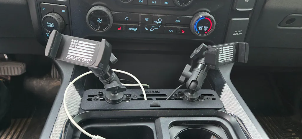 If you're looking to create the most capable device mounting solution in your Super Duty, this center console mount pairs perfectly with our 2023+ Ford Super Duty RubiGrid® Dash Mount. Combined, they create a dual-zone command center that handles everything including phones, radios, tablets & beyond.