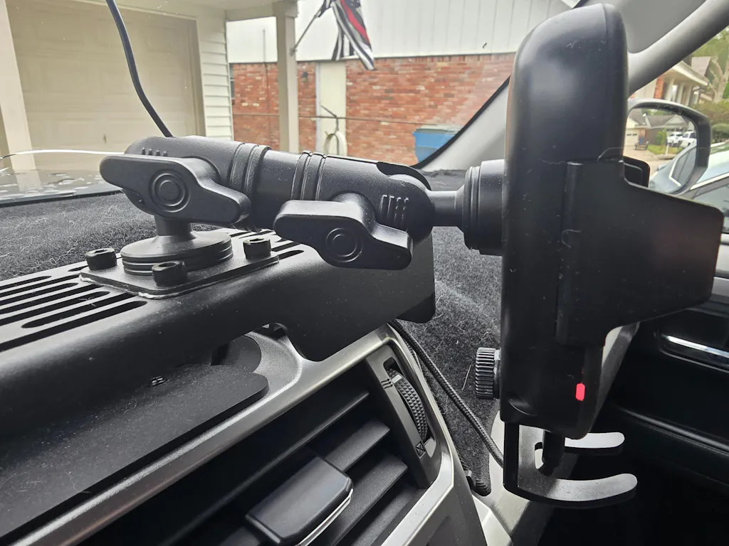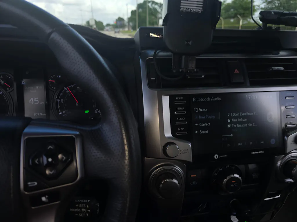Our RubiGrid® 4Runner Dash Mount installs on the bezel above your radio. It's perfectly positioned above your radio without obstructing your view of the road or blocking your air vents. Your devices are always within reach when you need them.
