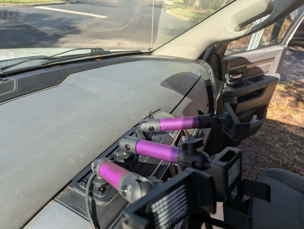 RubiGrid® for RAM is fully expandable to use up to 3 AMPS-Style balls so you can securely mount up to 3 different devices on the same dash mount.