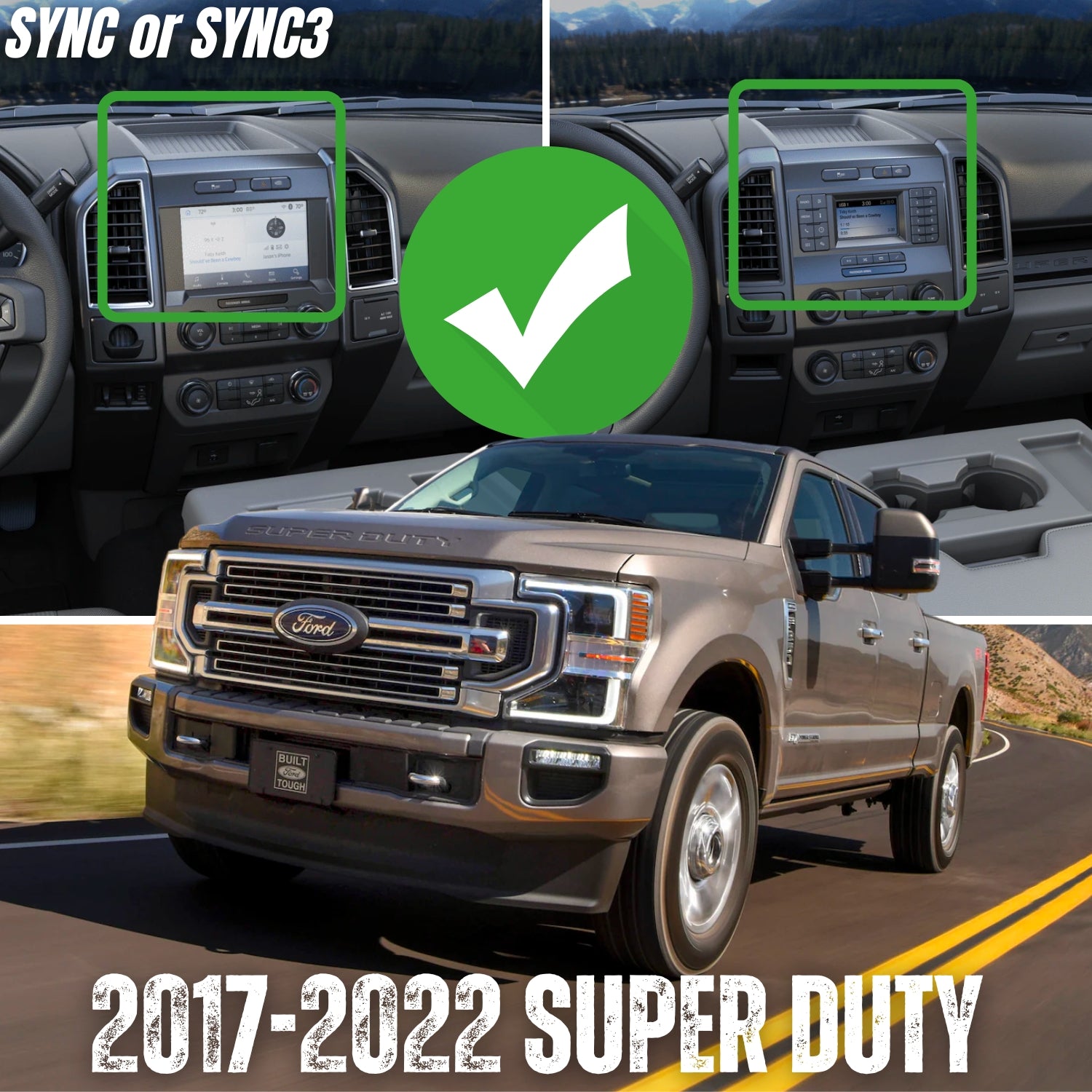 If you have a 2017-2021 Ford Super Duty (all trim levels) or a 2022 Ford Super Duty XL or XLT equipped with either SYNC or SYNC 3, we have dash mounts for your truck.