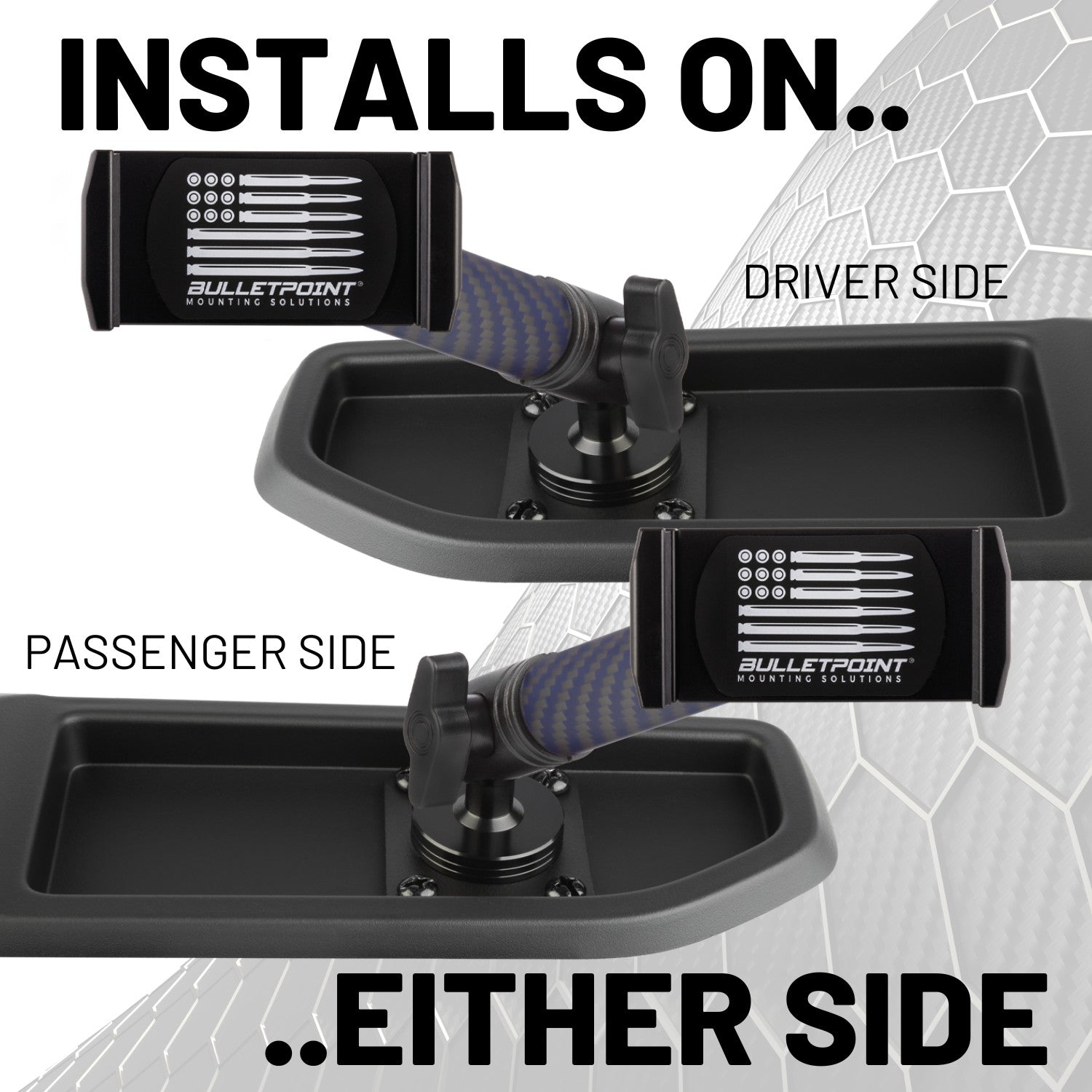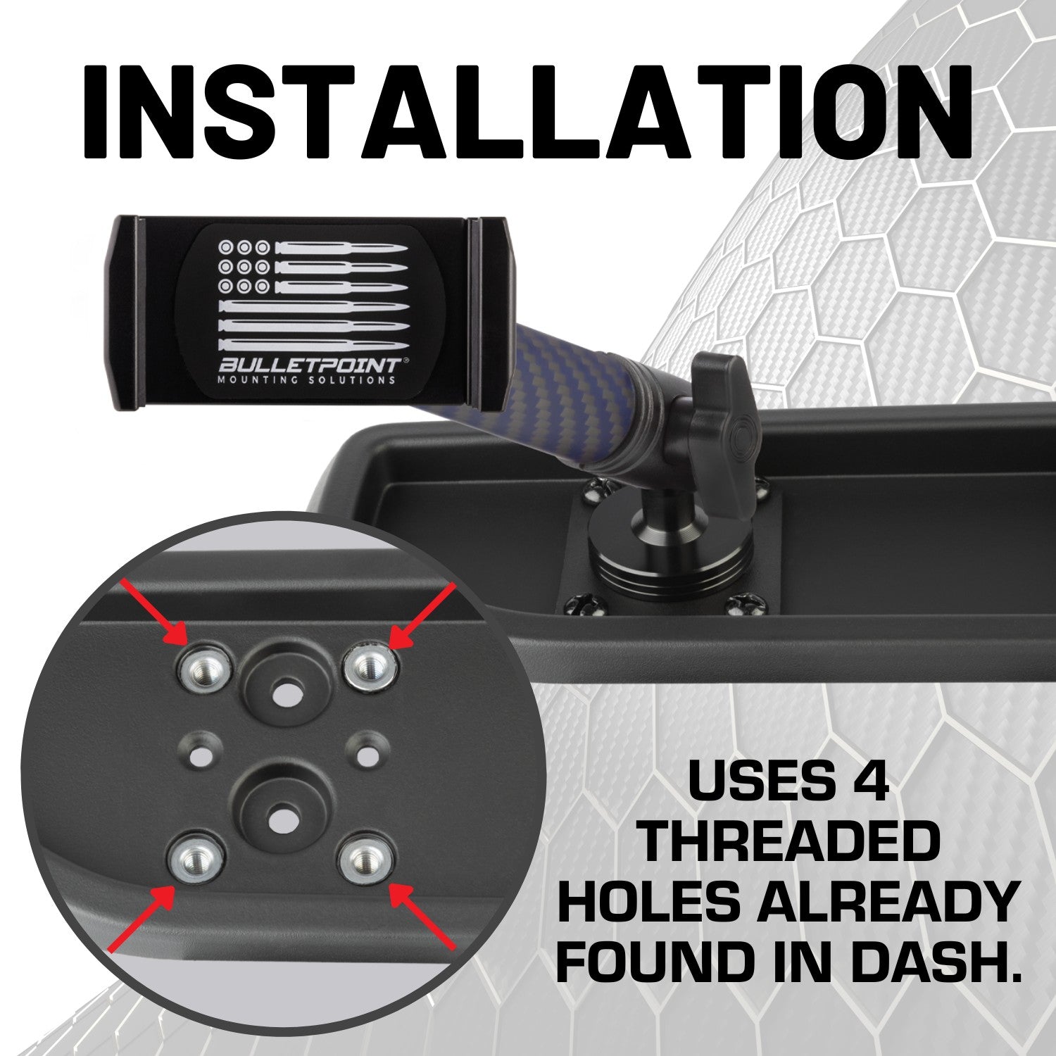 The 2024+ Jeep Wrangler 4xe features AMPS mounting holes underneath the dash tray cover on both the driver and passenger side giving you the ability to easily install our device holder.