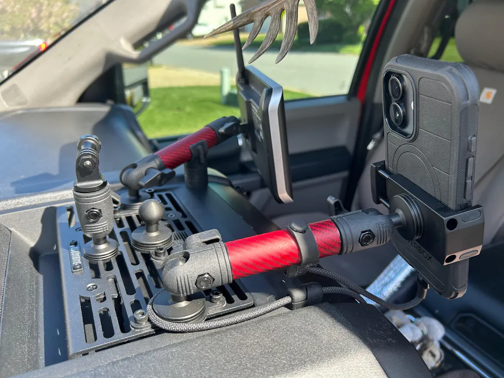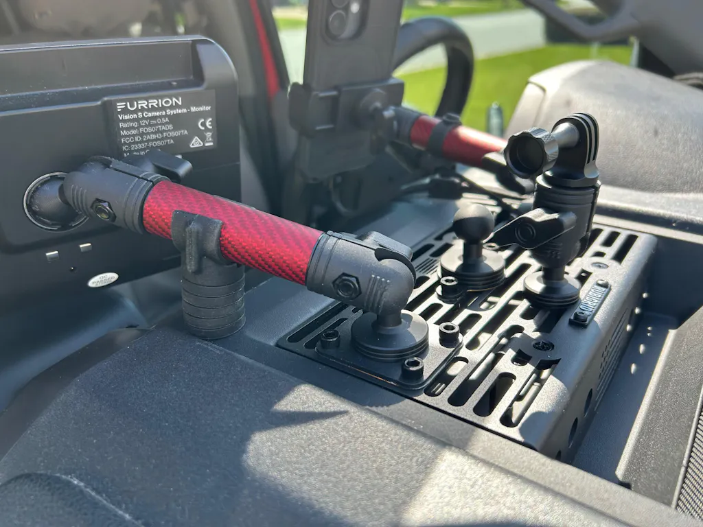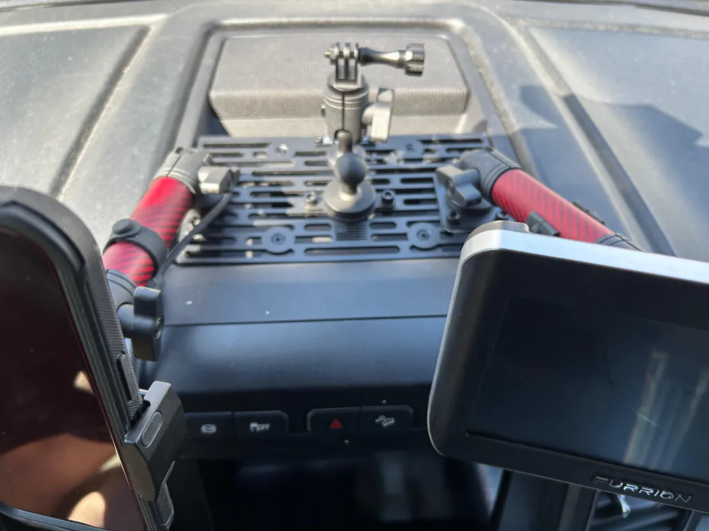 The RubiGrid mount works great for positioning my phone and dash cam.