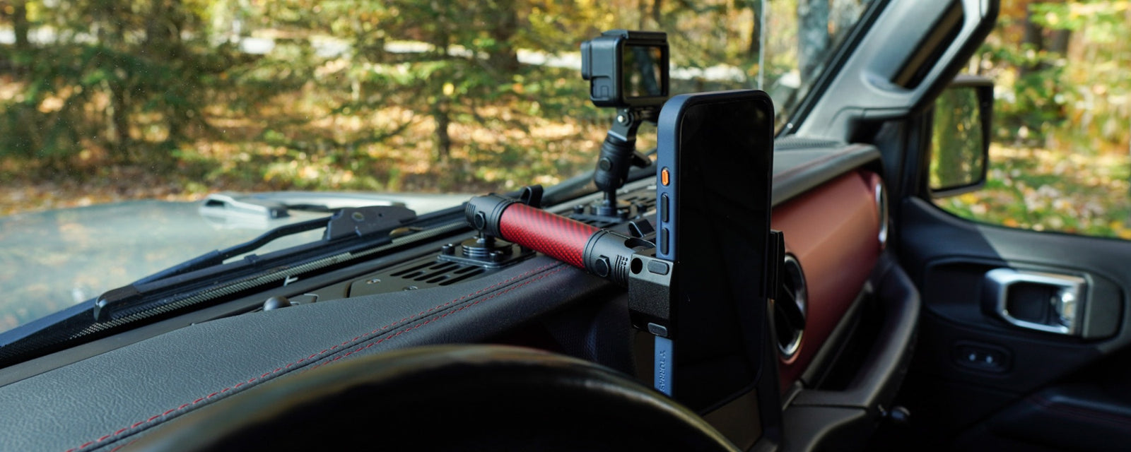 Our universal mount uses a spring-loaded mechanism that grabs your phone and features rubberized side and back contact points for a secure grip. Our universal phone holder is the top choice of customers who go off-road.