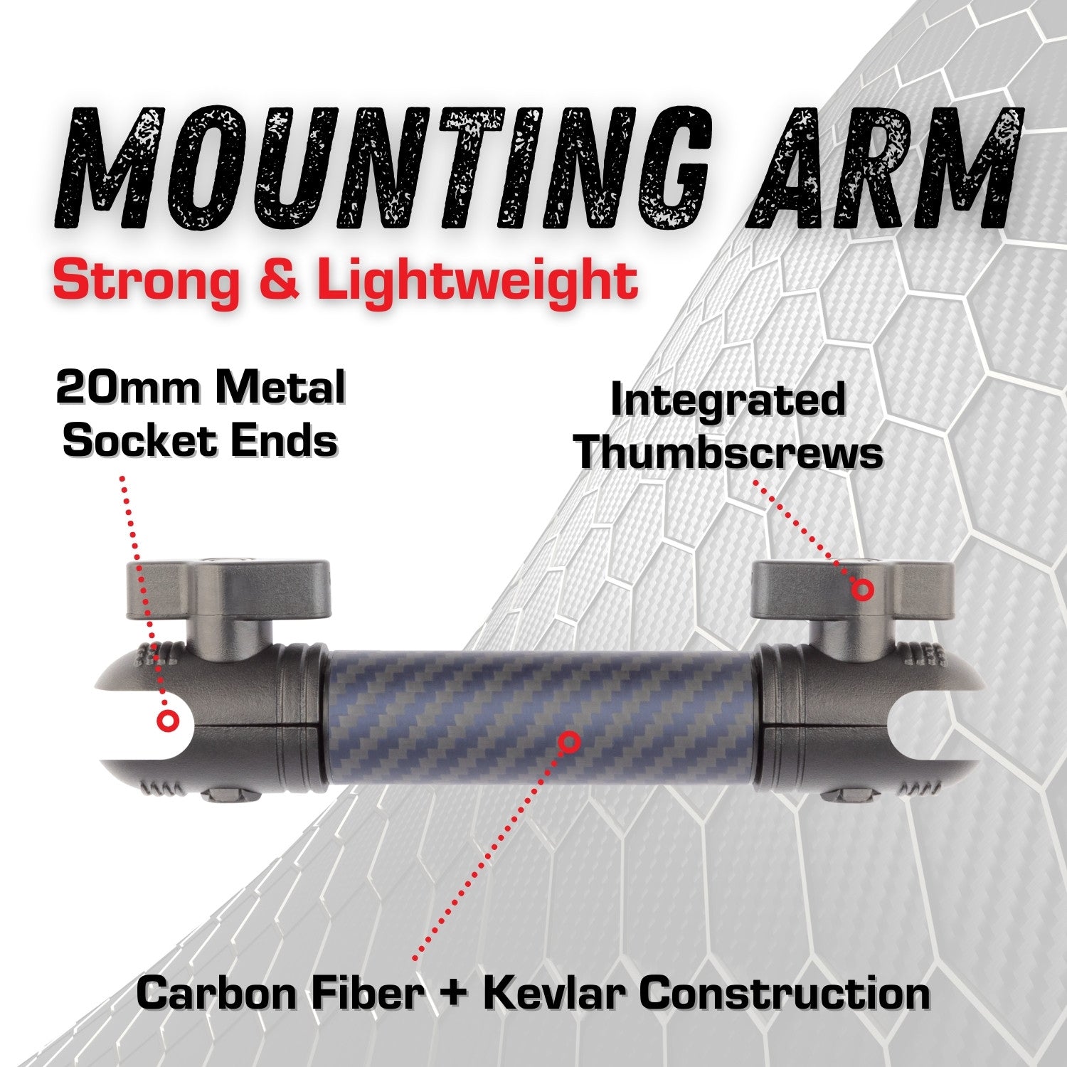 The Carbon Fiber + Kevlar arm provides a rock solid connection between the base and your device holder.