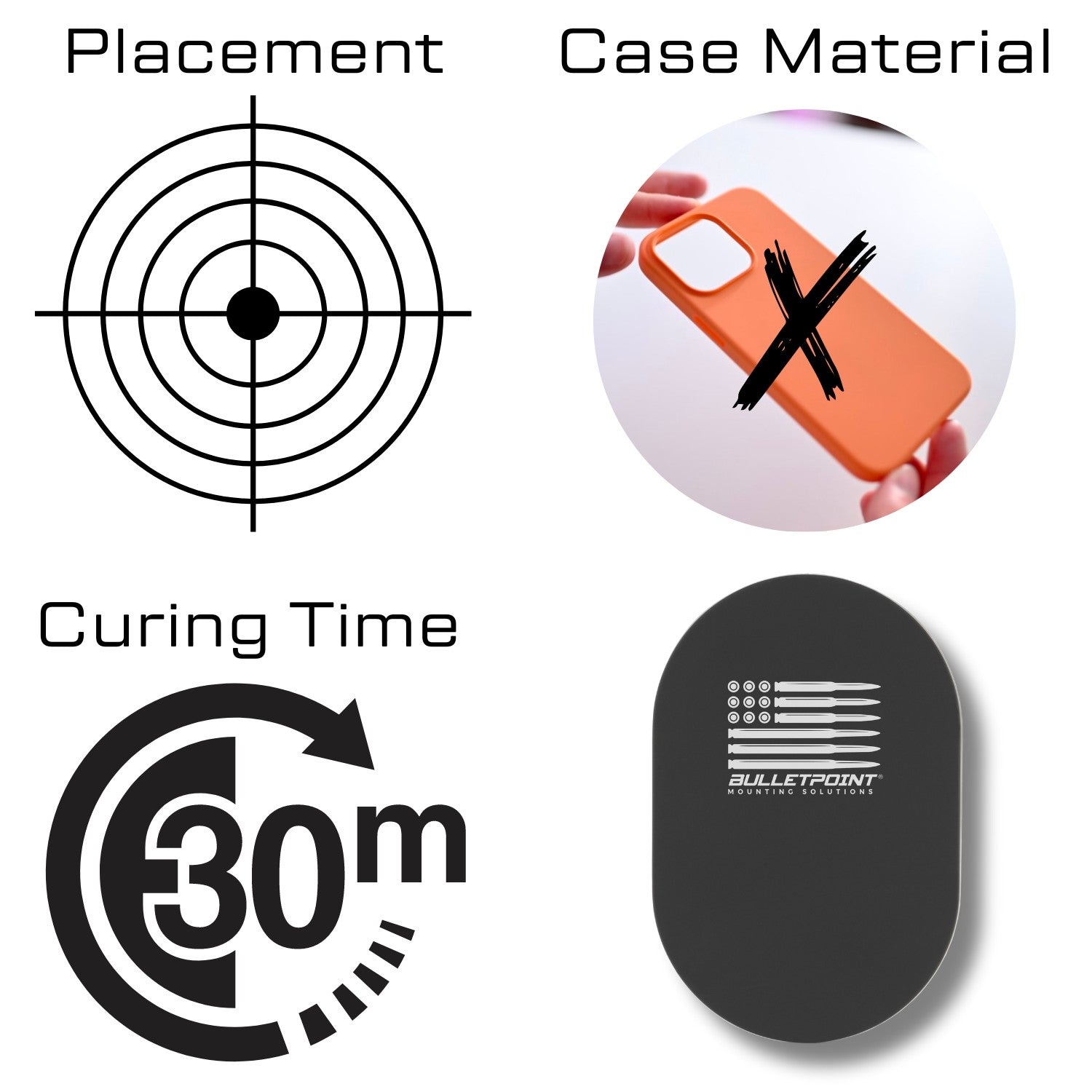 We recommend waiting at least 30 minutes to allow ample time for the double sided tape to properly adhere to the mounting surface. If not, the metal ring may loosen while attempting to separate the phone from the MagSafe wireless charger.