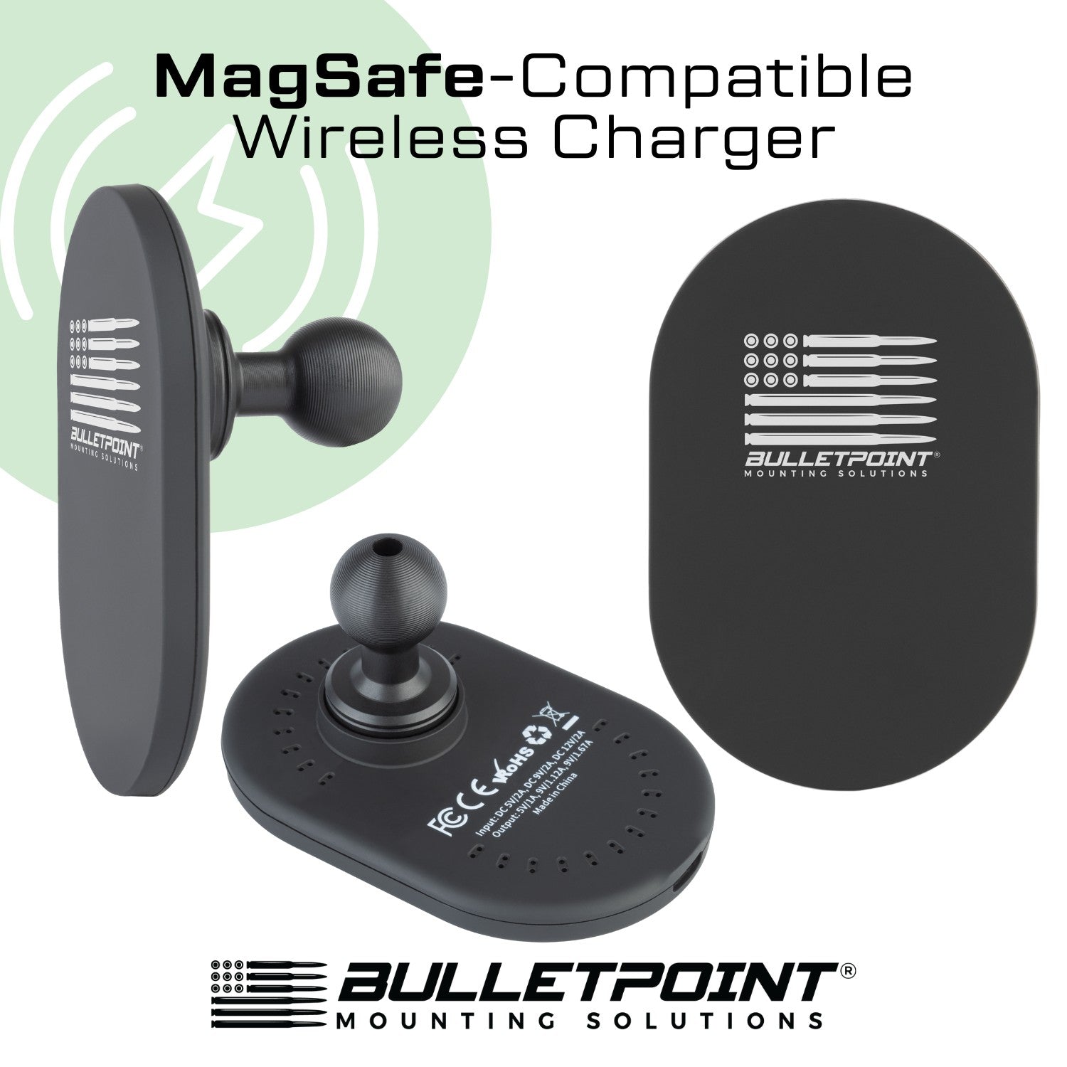 The MagSafe-Compatible Wireless Charger comes with an integrated 20mm ball which allows for a seamless connection with any of our standard mounting arms.
