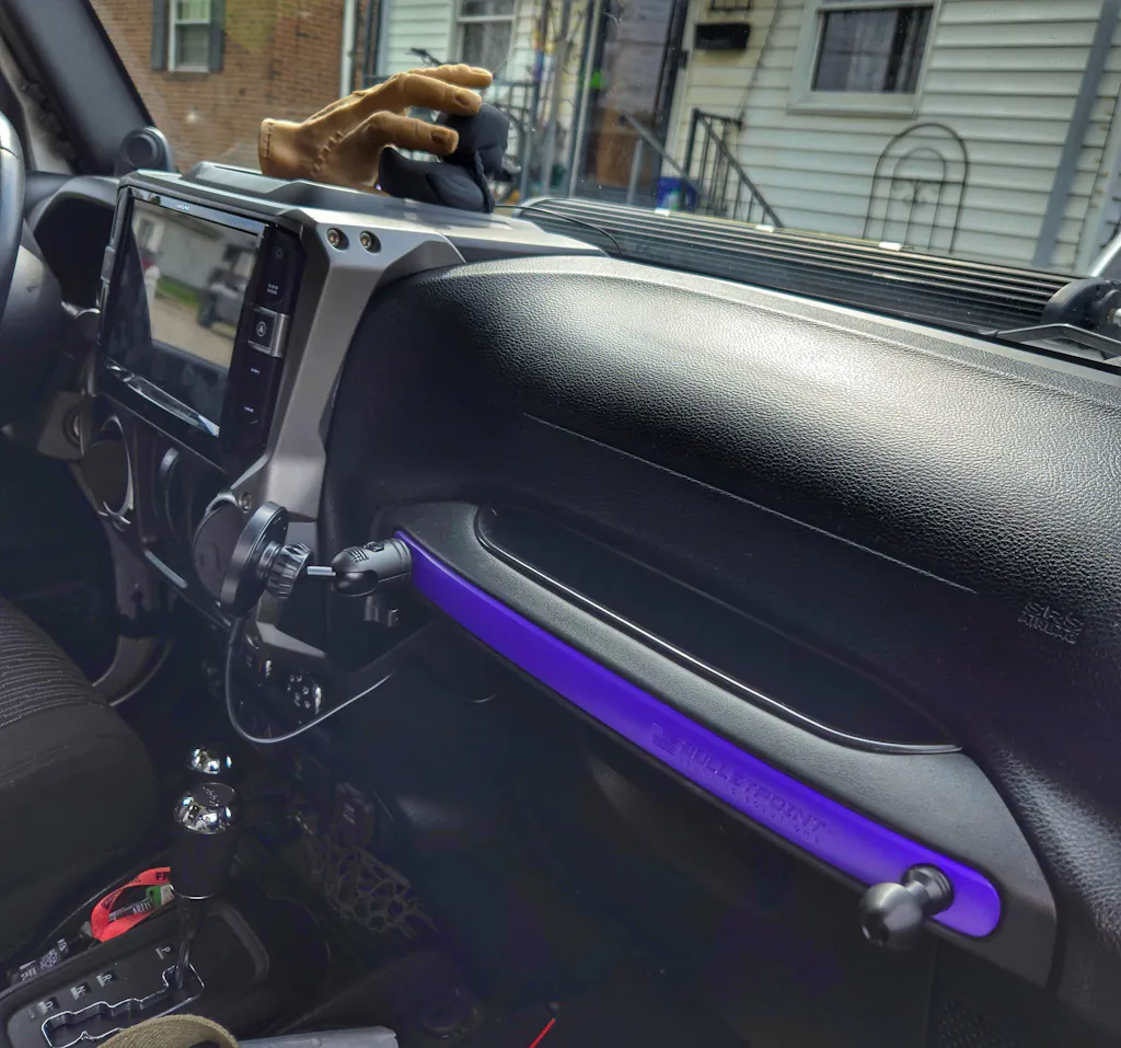 For the ultimate Jeep Command Center, combine this Grab Bar Mount with our RubiGrid® Jeep Phone Holder Dash Mount or any of our other 2011-2018 Jeep Wrangler JK Dash Mounts.
