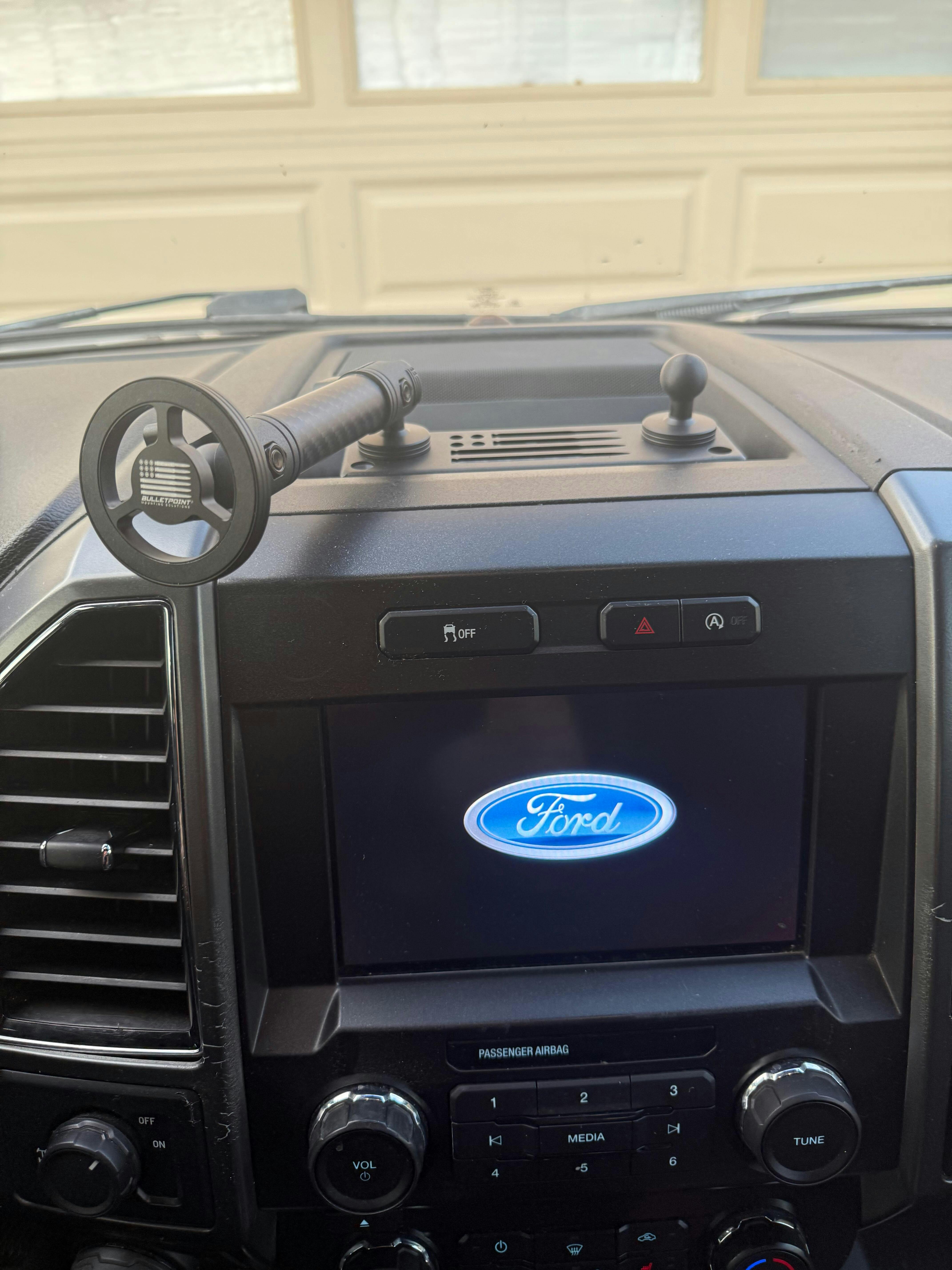 NOTE: if you have a 2022+ Super Duty equipped with the larger, upgraded SYNC 4 screen or the Tremor Off-Road Package, we offer a specific solution for your vehicle: 2022+ Ford Super Duty Tremor Off-Road Package / SYNC 4 Dash Mounted Phone Holder