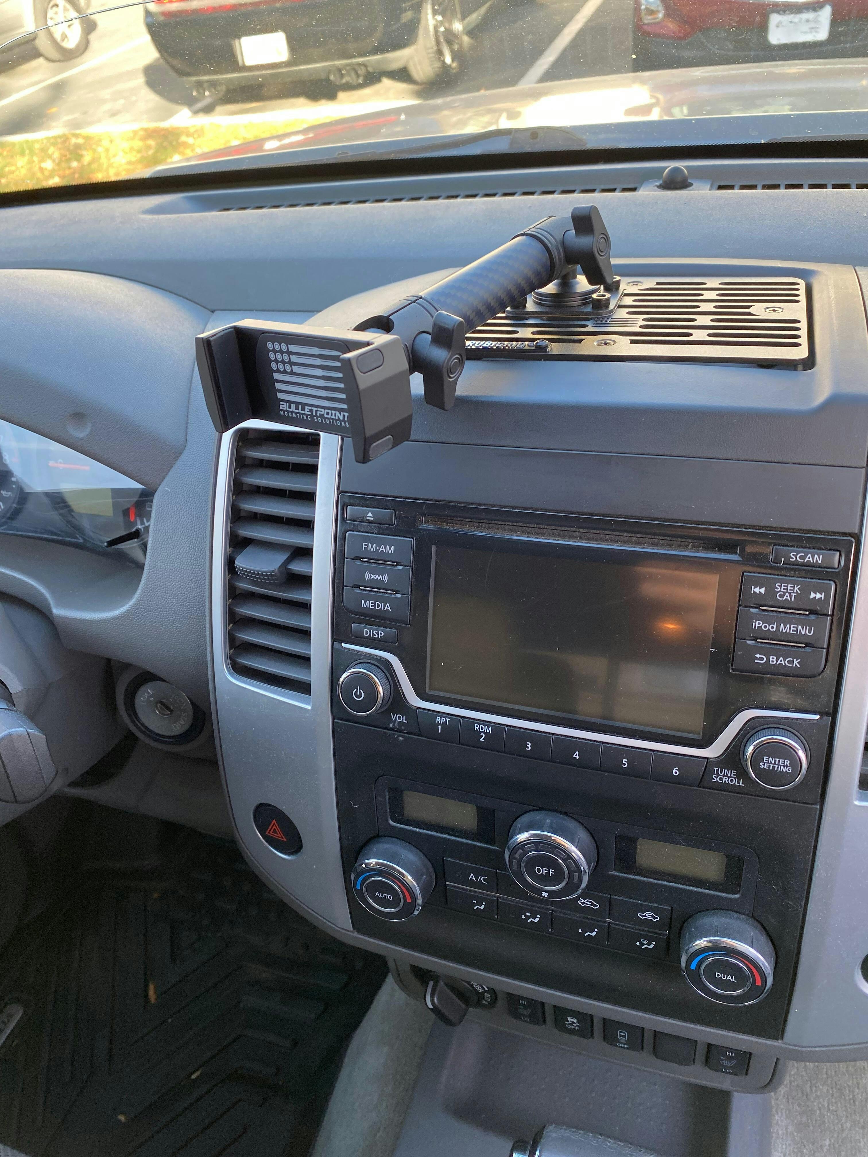 Built and designed specifically for the 2009-2021 Nissan Frontier and 2005-2015 Nissan Xterra (with round dimple dash tray), our rock solid dash mount installs securely into the dash of your truck and provides a solid and reliable mounting point for your devices.