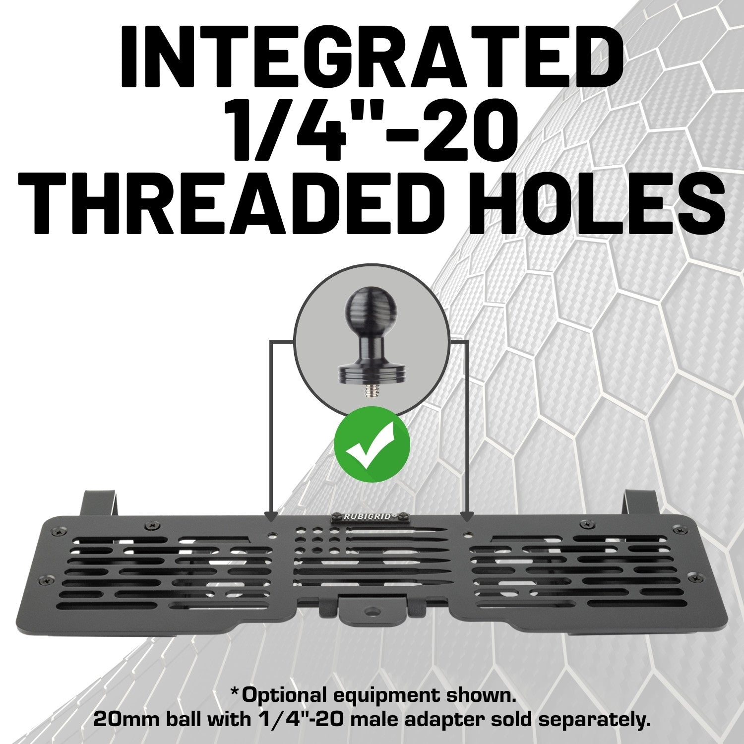 PRODUCT UPDATE: as of February 19, 2026, this is V2 of our RubiGrid® dash mount which features a no-drill installation & the addition of two 1/4"-20 threaded holes.