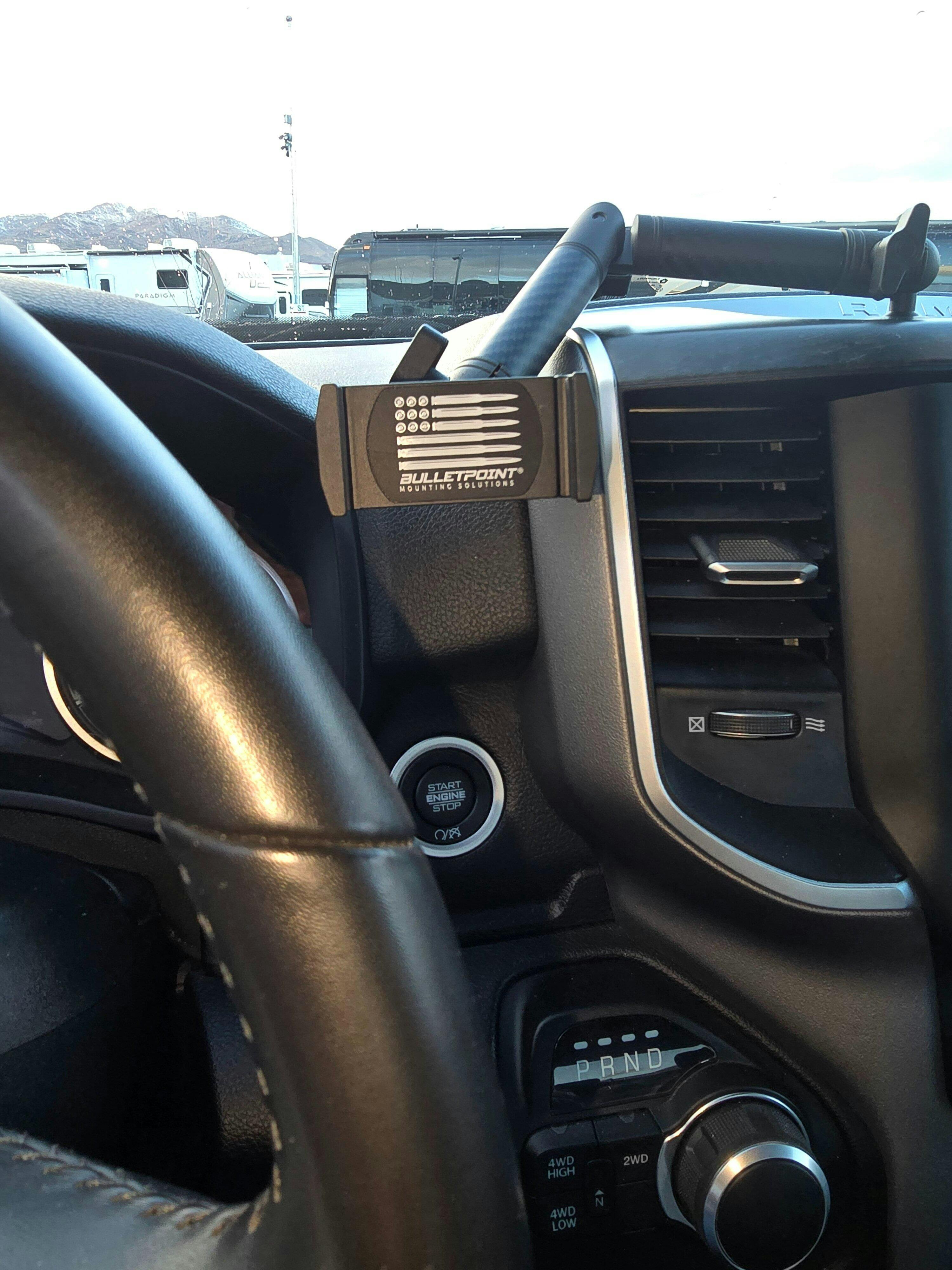 Built and designed specifically for 2019+ RAM Trucks, our rock solid all-metal dash mount installs securely into the dash of your truck and provides a solid and reliable mounting point for your devices.